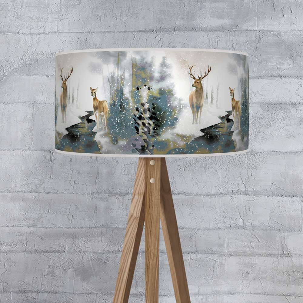 Deer Stag Mustard Blue Ceiling Light Drum Lamp Shade dz201